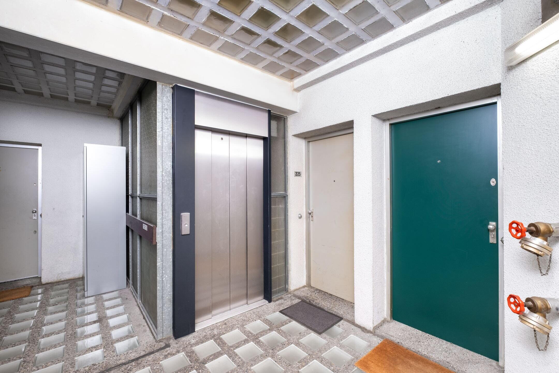 Via de trap of de lift kom je vanaf de vierde woonlaag bij het appartement.