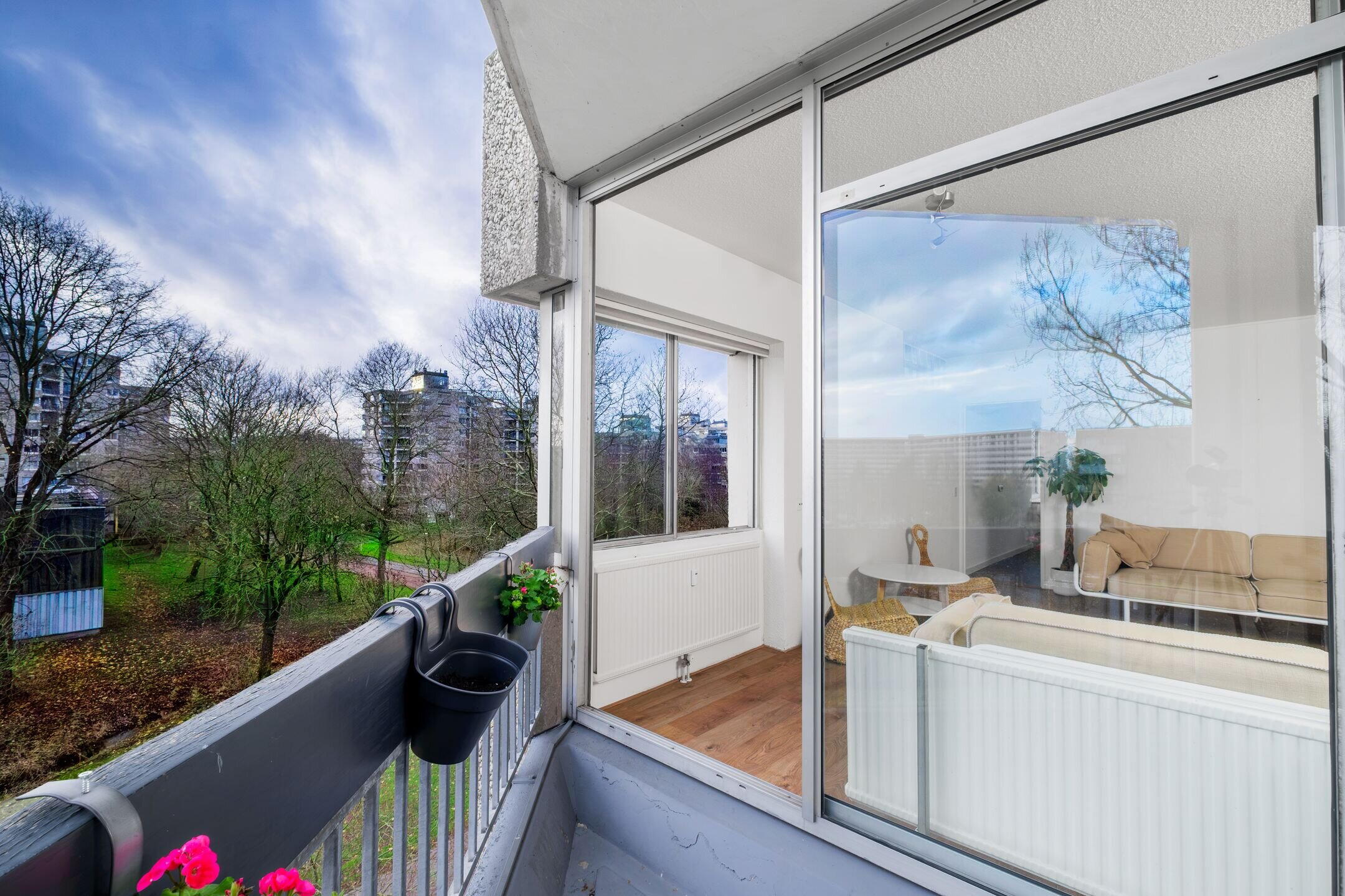 This 3-bedroom apartment is located in the park, near the shopping center Ganzenhoef, the metro but also the Bijlmerweide with a petting zoo and a nature playground.